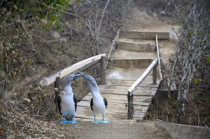 Modronogi »boobyji« so znani po svojih svetlo modrih nogah in sivih dolgih kljunih. Vsako leto si najdejo novega partnerja, zato je paritveni ples zanimivo opazovati vsako poletje (maj – julij). Samci dejansko plešejo, se prestopajo in razpirajo krila pred samicami. Ob tem tudi izredno lepo živžgajo. Nasprotno pa samice samo stojijo in opazujejo, ter vmes malo zakrakajo. Če se jim zdi ples samca prikupen, z razporom kril odgovorijo na dvorjenje in to pomeni, da sta postala par za naslednjih nekaj mesecev. Toliko, da skupaj naredita gnezdo, zvalita jajca in vzgojita mladiča.
