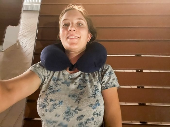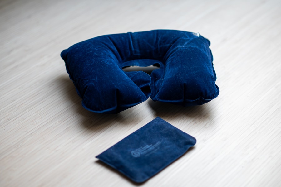 Mislim, da so bile to prve blazine za okoli vratu, ki so obstajale. Gotovo pa so bile prve, ki sva jih imela midva (če odštejemo tiste navadne “povštre”, ki jih pač vzameš od doma in poskusiš uporabit na potovanju). Pred prvim daljšim potovanjem (ko sva pri svojih 17. letih letela v Avstralijo), sva kupila napihljivo blazino za okoli vratu. Zdela se nama je idealna, saj je bila poceni in se je zelo lepo zložila, ko je nisva uporabljala.