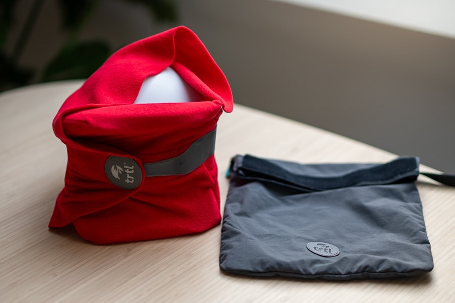 Obstaja več vrst Trtl blazine. Najbolj osnovna je iz flisa, ki je bil nama pretopel, verzija “cool” bi bila verjetno boljša. Moram priznati, da mi ob prvem pogledu in prvem stiku tale zadeva ni bila všeč. Ampak, sem pa z njo prespala skoraj cel 11-urni let in se res naspala. Tako da očitno je nekaj na tem 🙂 Naročiš jo lahko na Amazon.de (ja, midva res veliko kupujeva tam) ali pa direktno na njihovi spletni strani.