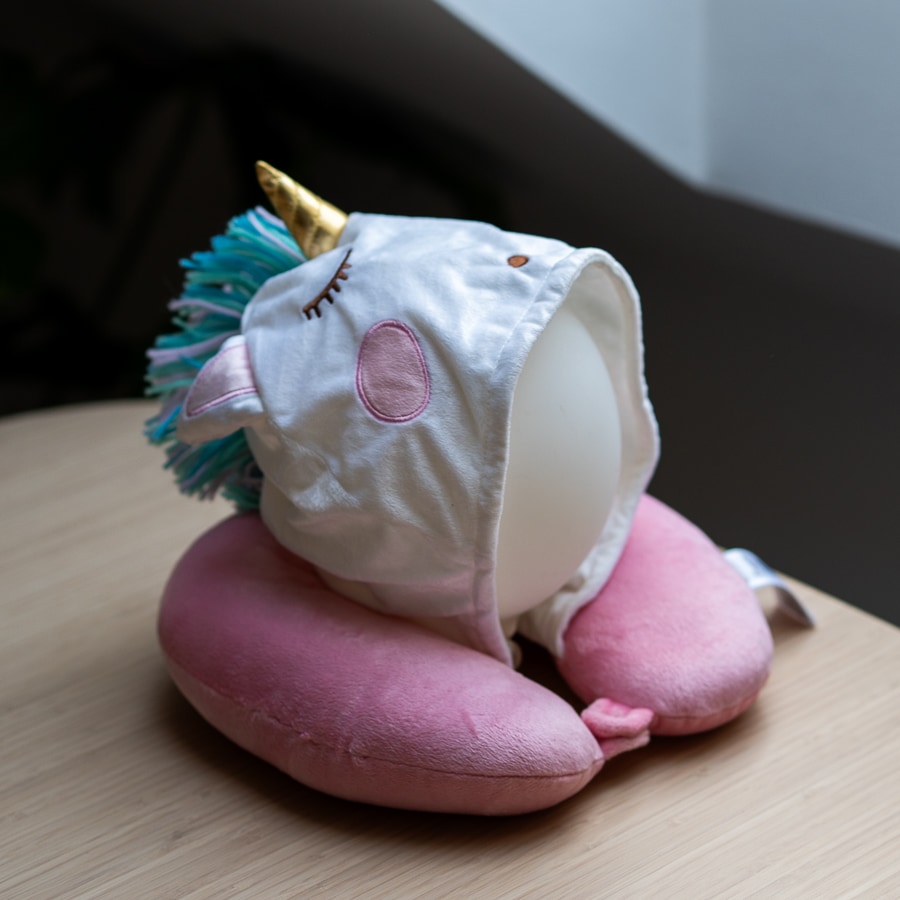 kaj pa tale? Dobila za darilo od sestra. Blazina in kapuca v enem – unicorn!