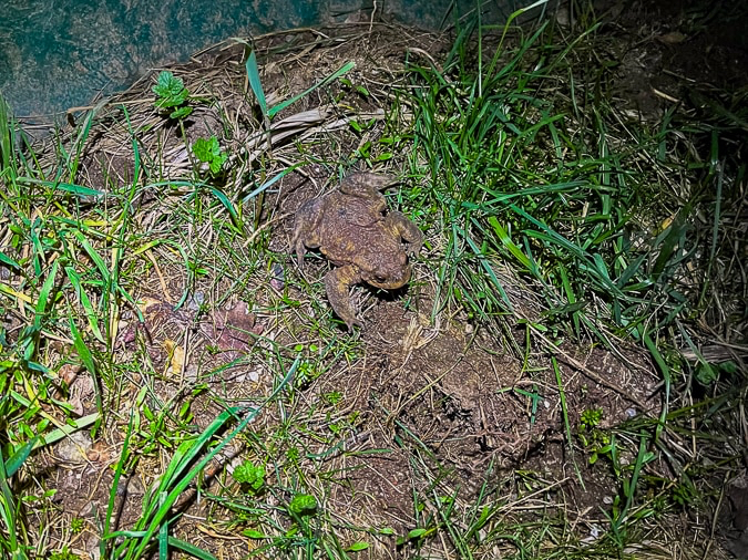 In potem smo začeli hoditi ob cesti. Z lučkami smo svetili po tleh in iskali (žive) dvoživke. Ne boste verjeli, kako se lahko zlijejo z okoljem! Sploh jih ni lahko opaziti. No, po nekaj minutah so se tudi oči navadile oz. smo vedeli, kaj iskati in je šlo potem lažje. Za prvih nekaj primerkov sta se nečaka skorajda stepla, kdo bo živalco prijel in prestavil v vedro.