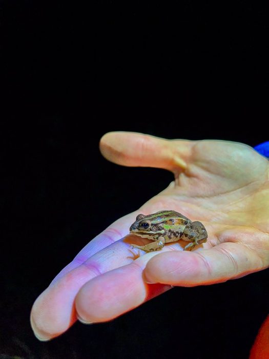 Torej, vsako živalco smo prestavili v vedro, strokovnjak v skupini pa jo je identificiral in popisal. Ko je bilo vedro polno oz. so dvoživke v njem postale preveč nemirne, smo ga odnesli čez cesto in tam žabice stresli na travnik ter jim zaželeli vso srečo. Občasno smo našli tudi kakšno dvoživko, ki se je že vračala nazaj v gozd. To smo samo prijeli in odnesli par korakov bližje gozdu. Kako veš, kam je žaba namenjena? Jah, preprosto. Po smeri njenega gibanja oz. po smeri, v katero je obrnjena.