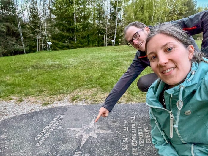 Severno od Vilne, v kraju Purnuškės, se nahaja geografski center Evrope, kot ga je leta 1989 izračunal Francoski nacionalni geografski inštitut. Razlaga meja Evrope je spodaj, še prej pa par besed o samem centru Evrope. Tam stojita dva spomenika. Večji in bolj opazen je marmorni steber z zvezdnim krogom, ki predstavlja Evropsko unijo. In okoli njega so zastave članic EU. Ampak to ni dejanski center Evrope. Dejanski center je en manjši balvan na robu tega kroga zastav, ki ima vklesane koordinate in napis “center Evrope”. Mesto je simbolično, a prijetno urejeno za obiskovalce. Okoli so tudi razne stojnice s spominki, ampak midva sva tja prišla tik pred mrakom, tako da je bilo že vse zaprto.