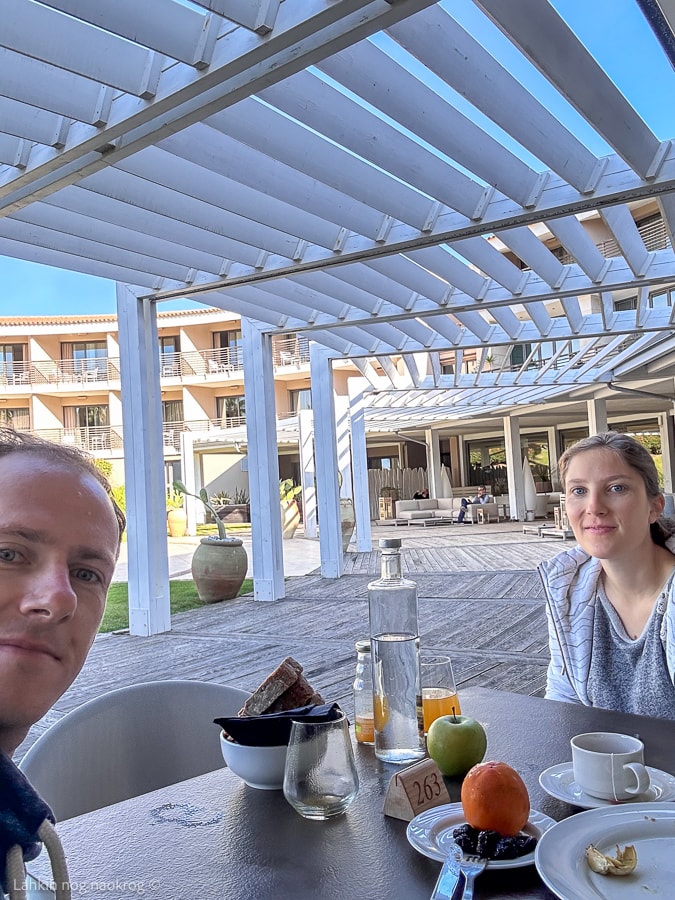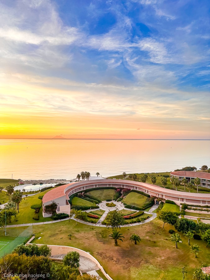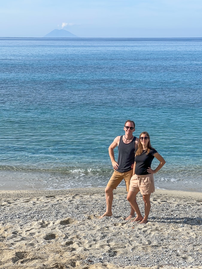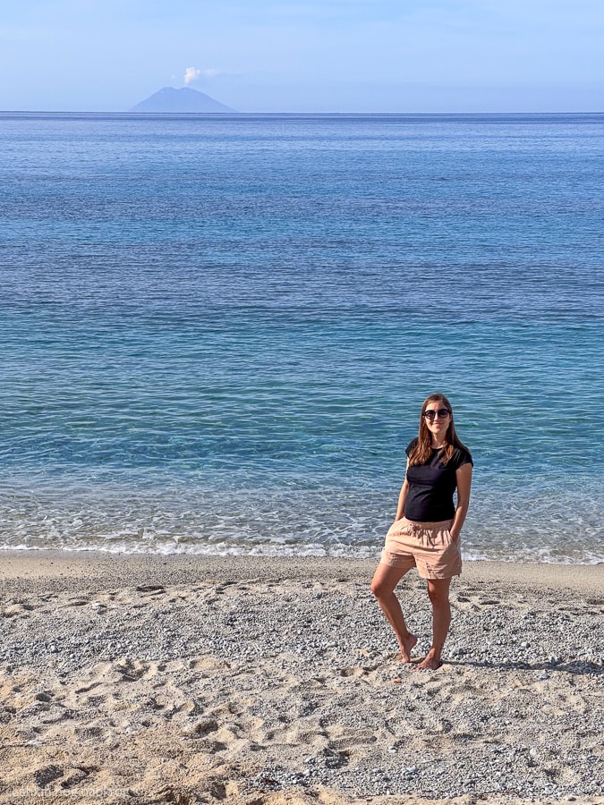 Resort ima svojo plažo z direktnim pogledom na vulkanski otok Stromboli, iz katerega se stalno malo kadi. Ta vulkan je res noro aktiven in razgled s plaže je bil najin najljubši del bivanja v tem resortu. Poleg plaže in dostopa do morja, je na voljo tudi zunanji bazen ter notranji bazen in velik spa z najrazličnejšo ponudbo tretmajev. Nekateri so vključeni v ceno bivanja (recimo savna, bazen in še par stvari), kakšne specifične masaže in lepotni tretmaji pa so seveda za doplačilo. Ker je prvi dan deževalo, sva preiskusila vse, kar je bilo vključeno v ceno, pa še v fitnes sva šla, kar je za naju res redkost 😅.