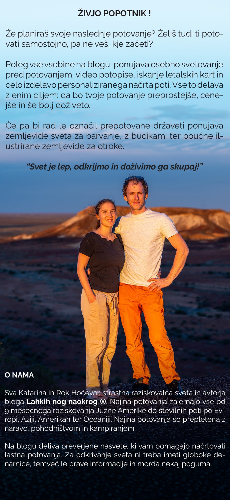 Vidva sta meni najbolj pristna slovenska popotnika! 'Nezaigrana' in preprosta in vedno piseta najboljše popotniške vtise.