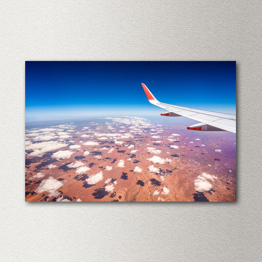 Razgledi z letala so vedno vznemirljivi, saj obljubljajo neko dogodivščino, potovanje. Tole je pogled na puhaste “ovčka” oblake nad avstralskim Outbackom, torej osrednjim delom Avstralije, kjer prevladuje rdeča puščava.