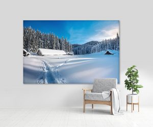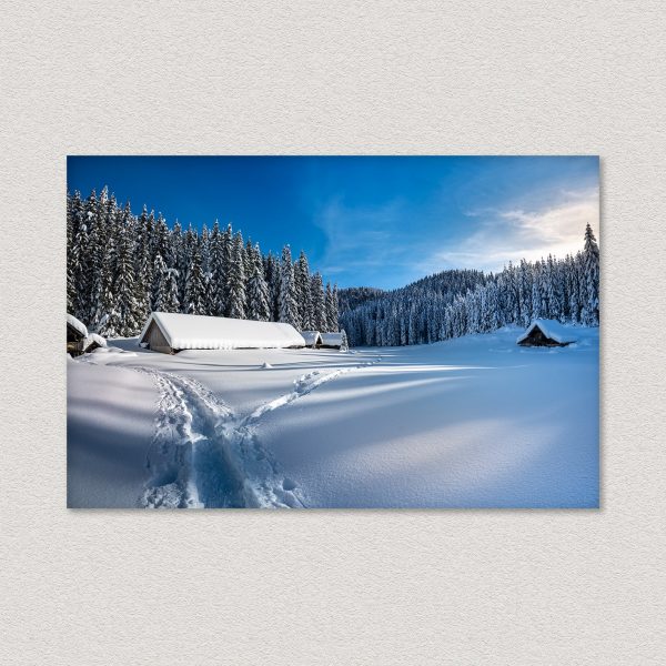 Stenska slika: Zasnežena planina, Pokljuka, Slovenija